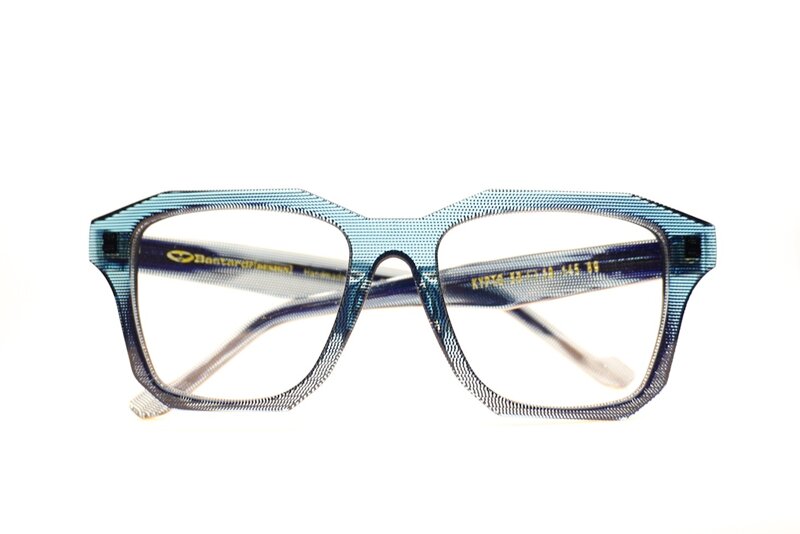 Occhiale realizzato combinando il sapere artigiano, lastra di acetato di cellulosa, fresatura, burattatura, finitura e lucidatura.